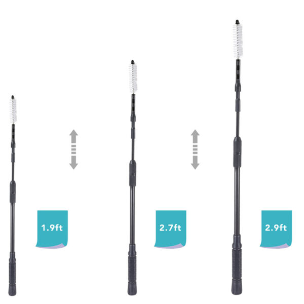 4. Telescopic handle: Premium carbon fiber composite construction, it can be extended from 19.7 inches to 35.4 inches which is long enough to clean up to a 2.65 ft depth tank. Threads together with extension tightly no flexing, it can keep water from going into the pole