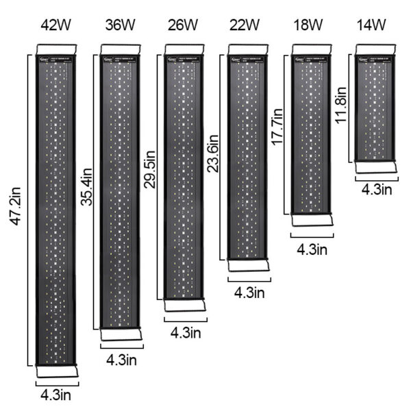 - 6. For 12-54in tanks, steady brackets, and adjustable fish tank light legs.